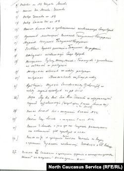 Опись документов, сданных Гайдаром Бамматом члену горского правительства Зубайру Темирханову. Среди переданных документов - важные дипломатические бумаги.