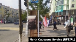 В центре Грозного появились инсталляции с черно-белыми фотографиями разрушенного от военных действий города. Это сделано для того, "чтобы гости смогли оценить, какие изменения произошли за это время, а также смогли узнать историю города", говорит сотрудник мэрии Грозного в эфире местного телеканала.